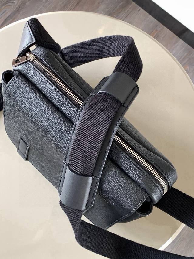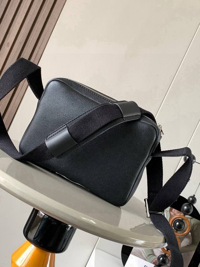 Original Leather DDD L0Ewe New Xs Military Messenger Bag. This classic messenger bag departs from the traditional design, featuring a zippered main compartment and a snap closure at the front for storing personal items, offering both security and convenience. It includes two card slots, and can hold cigarettes, a mobile phone, a power bank, and a wallet. Storage is ideal, rated 5 stars DDD. Made with imported pebbled calfskin and soft, fine-grained calfskin on the back, it features an adjustable cotton webbing shoulder strap for enhanced comfort. High-end, exclusive custom hardware with German-imported Safi thread, imported YKK zippers, and a newly upgraded cotton-linen lining, using genuine craftsmanship. DDD Dimensions: 24.5cm~18cm~10.5cm DDD Style Number: 9012 DDD Color: Black Pebbled