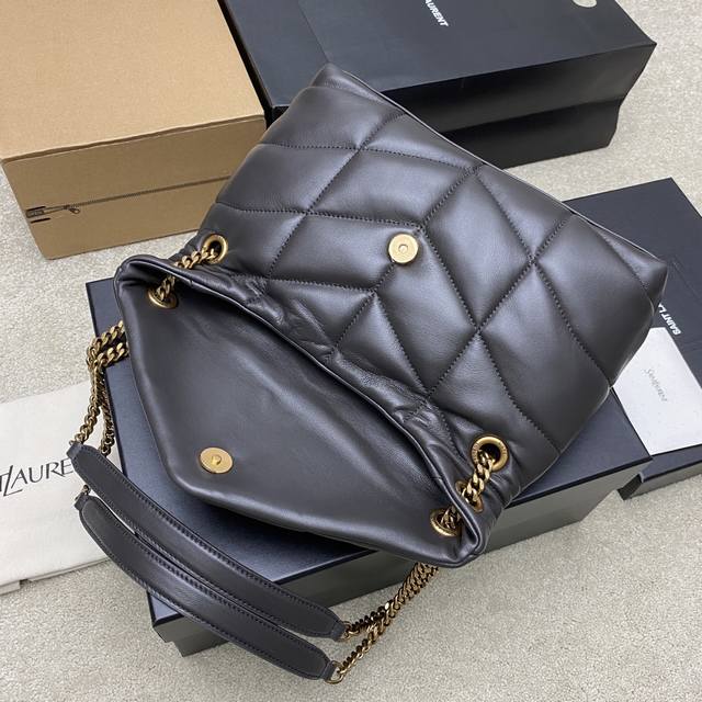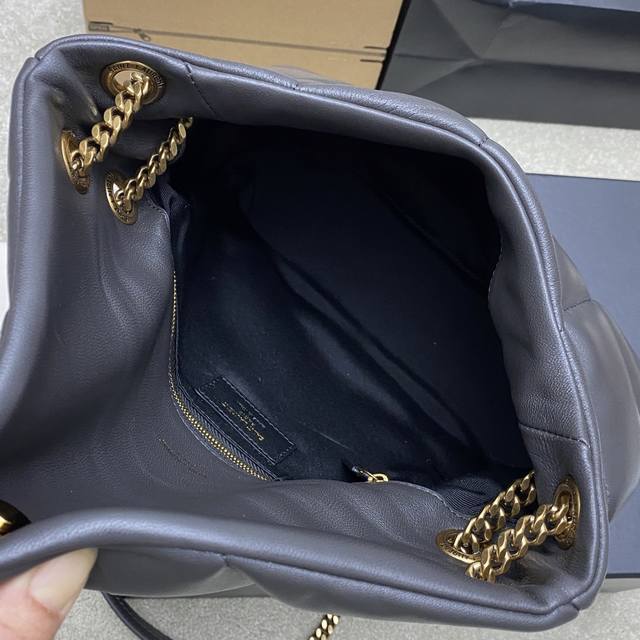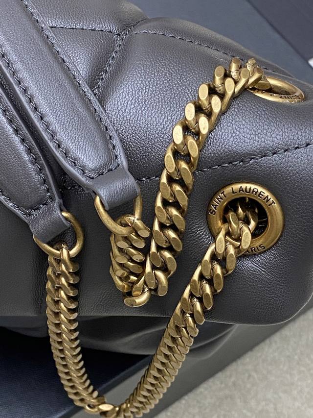 Original Leather Loulou Puffer Medium Quilted Lambskin Bag, made from genuine original leather, soft and delicate to the touch, like holding a cloud. The classic Y brand logo, chain, and buckle hardware are all made with Baume & Mercier matte gold hardware. The bag opening uses a magnetic snap closure after folding, providing excellent sealing and security. Model: 577476 Original Leather Size: 29X17X11Cm