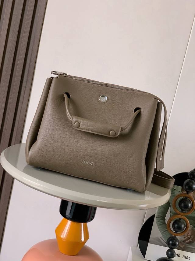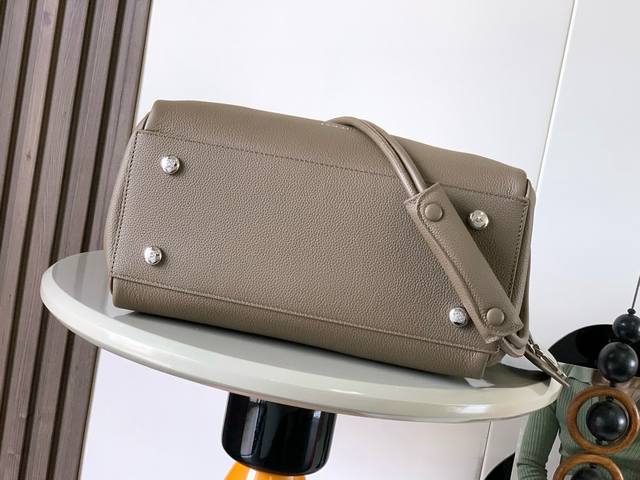 Original Leather Madrid Medium Handbag in Soft Calfskin. The Madrid features a soft, structured trapezoidal shape with a gusseted design, adjustable handles, and a pebble magnetic closure. This medium version is crafted from soft calfskin. *Can be carried on the shoulder, crossbody, or by hand. *Adjustable shoulder strap with leather extension. *Anagram pebble magnetic closure with zipper closure. *One zippered interior pocket. *Anagram pebble metal feet. *Nappa lambskin lining. Dimensions: 28.5cm