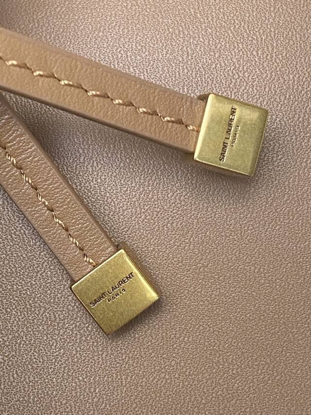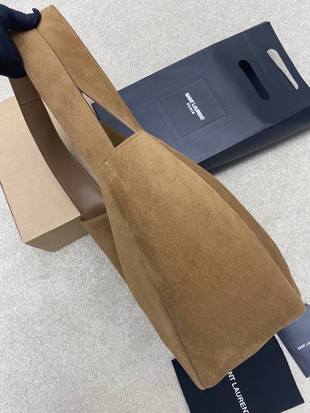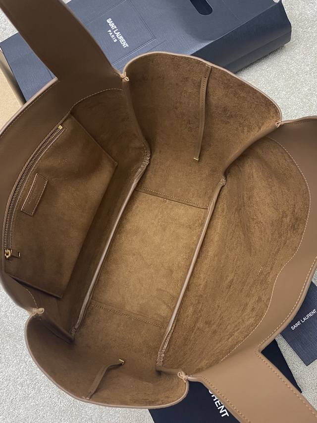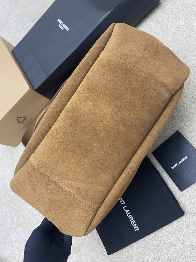 Original Leather DDD Matte Brown Antique Gold DDD A new horizontal tote version of the Bea handbag, featuring a leather buckle closure and Le Cassandre trim. Spacious with a matching suede lining, it includes a main compartment and an interior zip pocket. The interior drawstring allows for folding or unfolding on both sides as needed. Made of soft deerskin, the Bea bag boasts a rare and luxurious feel. Its simple design combined with its suppleness creates a relaxed and effortless look. The sides can also be folded down, offering two configurations. DDD Model: 763435 Original Leather DDD Dimensions: 50X28X18Cm This size does not include packaging. DDD