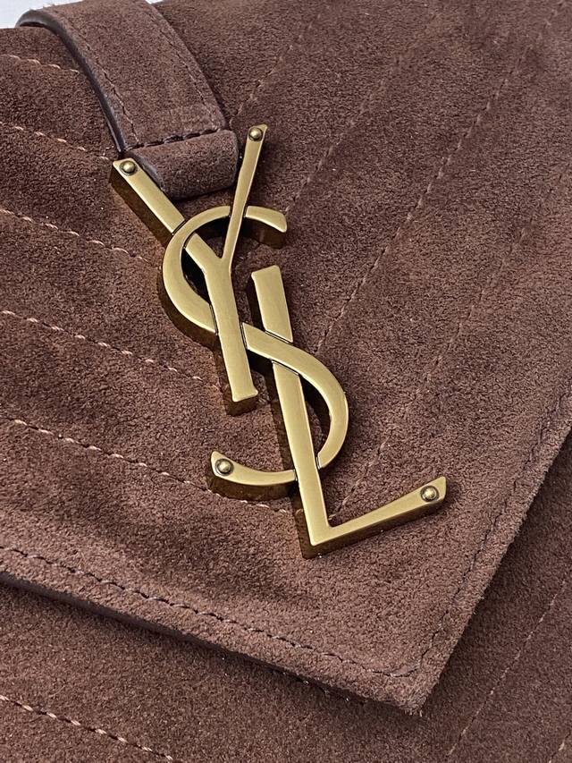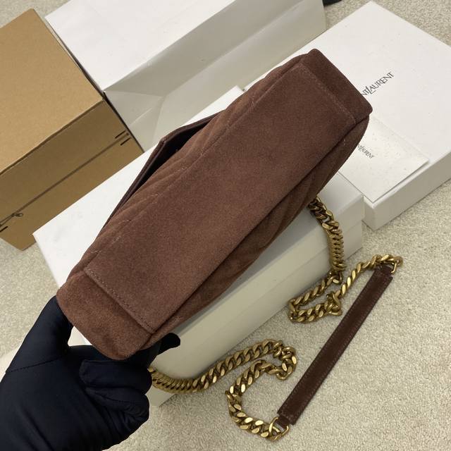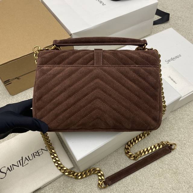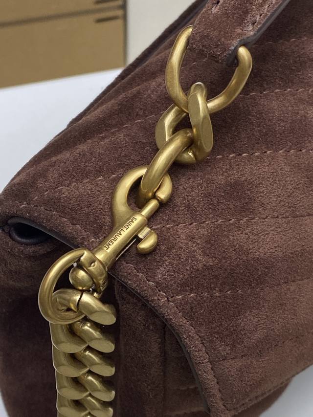 Original Leather Matte Coffee Antique Gold Yls Classic Matte Coffee Messenger Bag with Gold Hardware. This medium-sized handbag is practical and stylish! Made of imported European original deerskin leather with a super soft feel, it comes with a metal chain and a detachable leather shoulder strap. Model: 392737 Original Leather Size: 24X17X6.5Cm