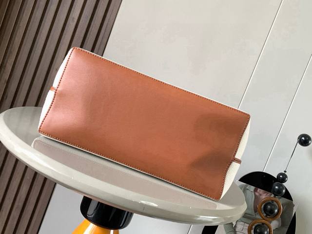 Original Leather Medium Calfskin Anagram Tote Handbag with Linen Patchwork. Features a simple and practical design with no unnecessary frills. The long and short shoulder straps are quite attractive, and the size is just right