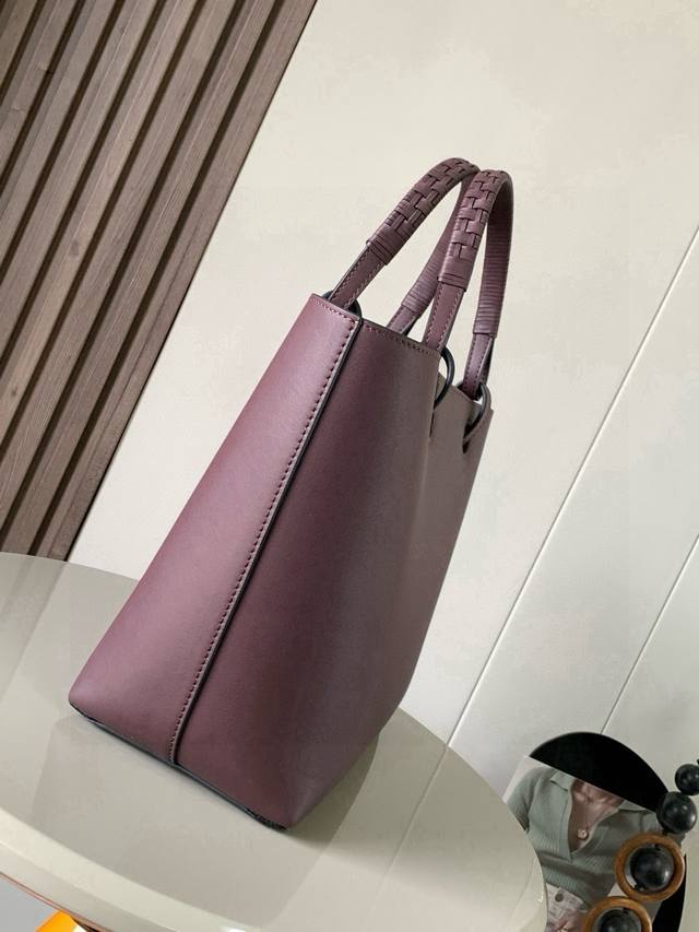 Original Leather Medium-Sized Calfskin Anagram Tote Handbag with Linen Patchwork. Features a simple and practical design with no unnecessary frills. The long and short shoulder straps are quite attractive, and the size is just right