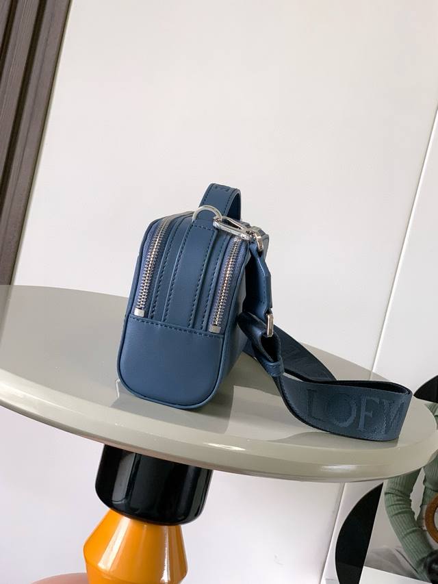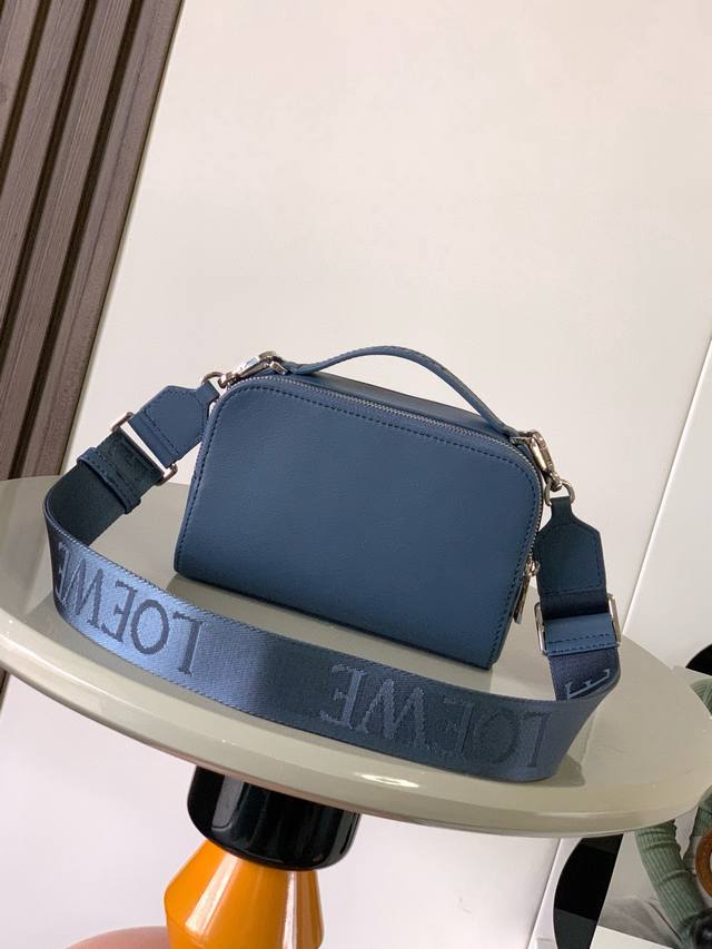 Original Leather Mini Camera Crossbody Bag in Satin Cow Leather. This mini camera bag meets your multi-functional needs. Made of smooth, high-quality satin cow leather, it boasts a compact and practical design with two zippered compartments for storing your camera and other small items. Whether for travel or everyday use, it meets your needs. The adjustable and detachable shoulder strap and top handle allow you to choose between crossbody or hand carry. Beyond practicality, this camera bag pays attention to detail. Slip pockets are convenient for storing small items, and the herringbone cotton canvas lining protects your camera from scratches. The Anagram embossed patch adds a touch of luxury. Not only is it a practical photography accessory, but it's also a fashionable trend item, making it a perfect statement piece that showcases your personality and taste. Size: 18cm~13cm~8.5cm Style Number: 9111 Color: Indigo