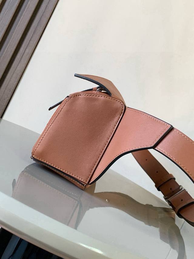 Original Leather Mini Classic Cowhide Puzzle Waist Bag. The rectangular shape and precise cutting techniques create the unique geometric lines of the Puzzle design. This mini waist bag is made of classic cowhide leather, which is soft and lightweight. Its understated yet distinctive design makes it suitable for both business and casual occasions. Later, I discovered a Puzzle waist bag, which is relatively niche compared to the classic Puzzle design. This waist bag removes the classic Puzzle handle and moves the back zippered pocket to the front. The waist belt is also a non-removable buckle. While retaining the classic Puzzle's casual and artistic basic shape, it adds a cool, mechanical feel, remaining classic and versatile. It not only has a considerable capacity but also improves body proportions. Can be worn over the shoulder or crossbody, with an adjustable shoulder strap and a metal buckle closure. Size: 18cm