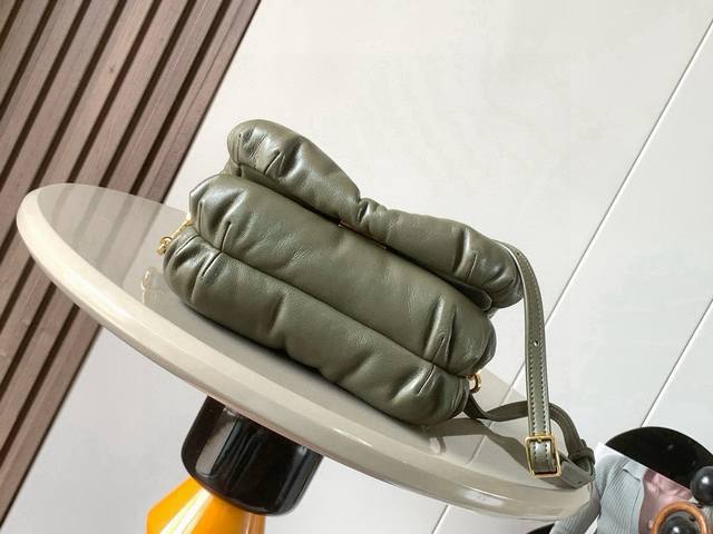 Mini shiny nappa leather puffer Goya handbag. Puffer Goya is inspired by Goya's aesthetic and key details. It brings a new sensory and tactile dimension through shiny nappa leather with goose feather lining. It comes with a detachable metal donut chain. *Shoulder carry, magnetic closure. "Two compartments include a zipper, a very special bag pocket and a patch pocket. Nappa leather lining is a very special bag. Puffer Goya is so fat, so fat and soft. Goya is so cute. It feels invincible and really beautiful! The cloud bag is chubby and soft. Fufu is super cute. It is as soft as a pillow and feels great. It comes with a short donut-shaped metal chain. It is not tiring to carry on the shoulder and the comfort index is perfect.