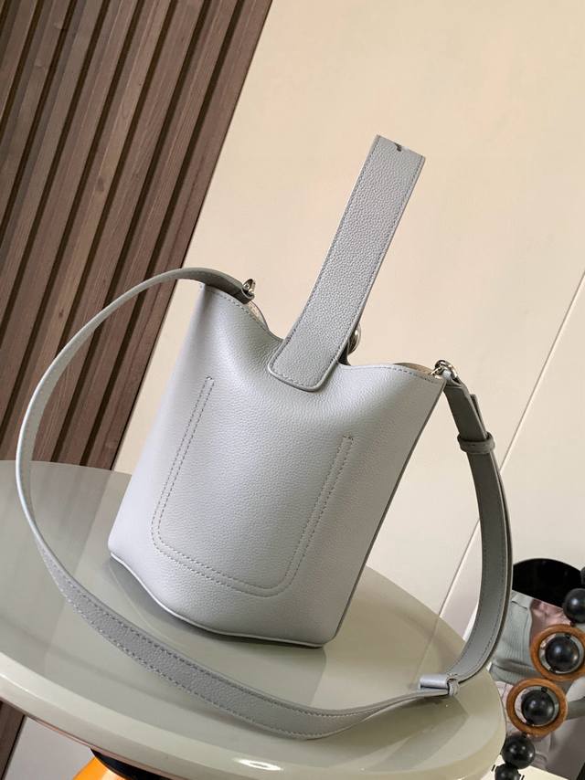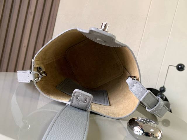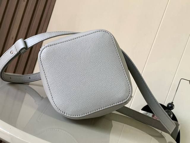 Mini soft grained cowhide leather pebble bucket bag The pebble handbag cleverly combines pure simple lines with eye-catching design style to create a unique and innovative handbag design. The iconic Anagram engraved hardware combines decorative and practical functions, with adjustable shoulder strap length and suitable for various carrying methods. The unique twisted structure complements the subtle details. This mini version is made of soft grained cowhide. Can be carried crossbody, on the shoulder or by hand * Adjustable and detachable shoulder strap * Magnetic buckle closure * Inner pocket * Synthetic leather lining *