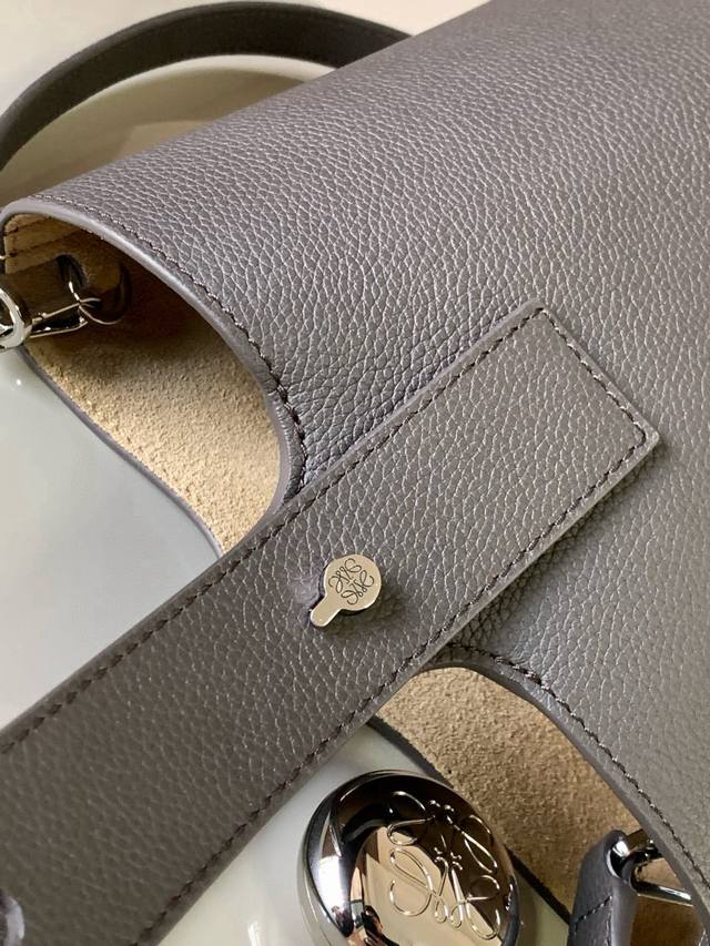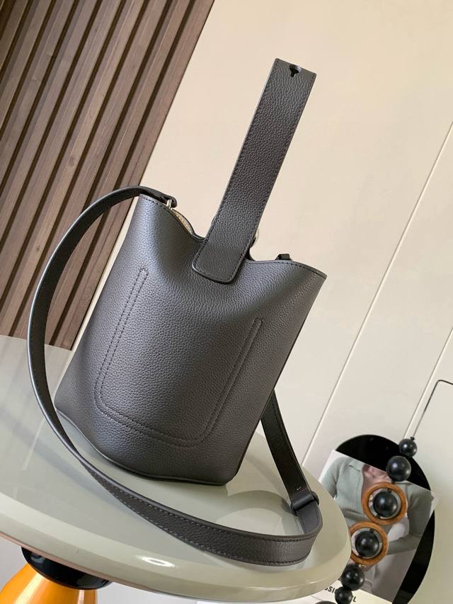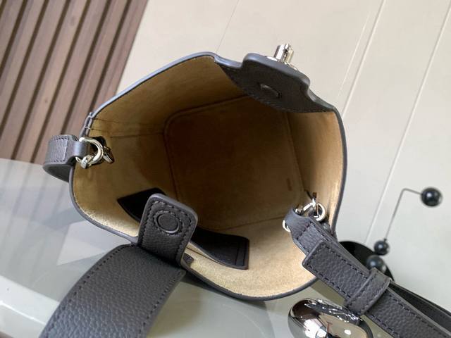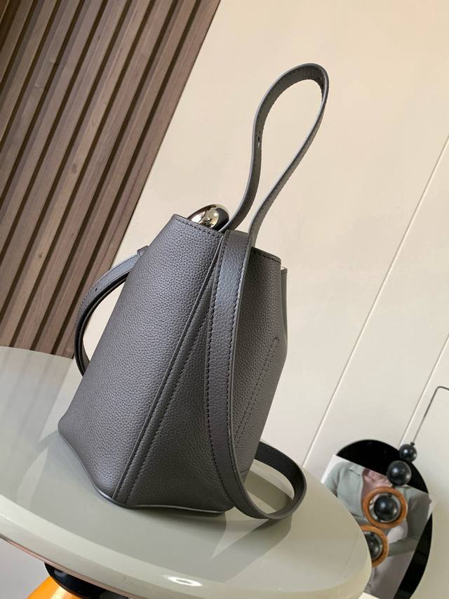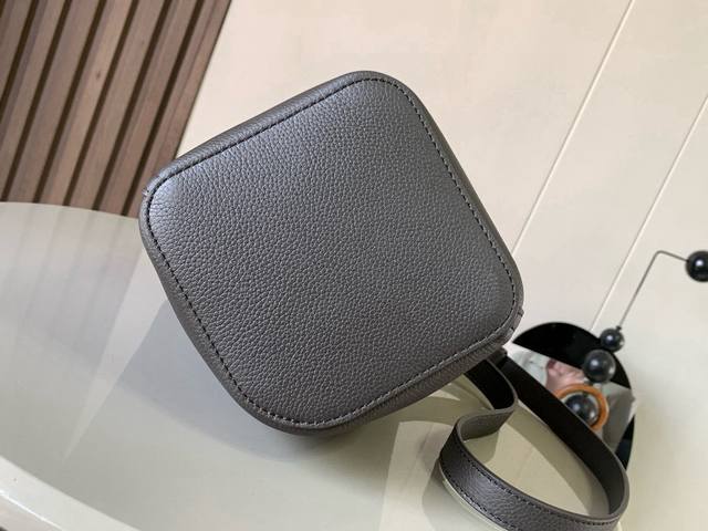 Mini soft grained cowhide leather pebble bucket bag The pebble handbag cleverly combines pure simple lines with eye-catching design style to create a unique and innovative handbag design. The iconic Anagram engraved hardware combines decorative and practical functions, with adjustable shoulder strap length and suitable for a variety of carrying methods. The unique twisted structure complements the subtle details. This mini version is made of soft grained cowhide leather. Can be carried crossbody, on the shoulder or by hand * Adjustable and detachable shoulder strap * Magnetic buckle closure * Inner pocket * Synthetic leather lining *