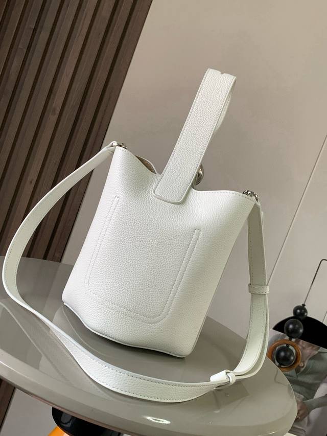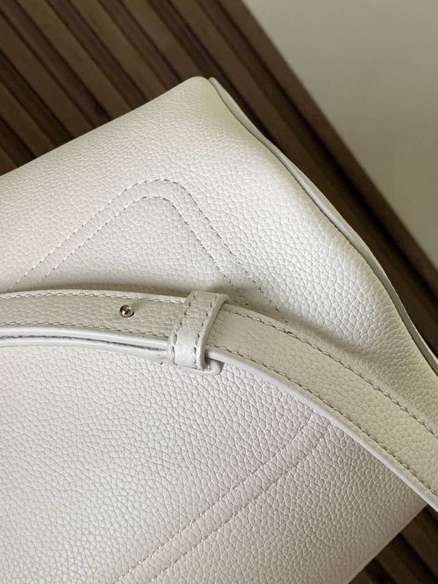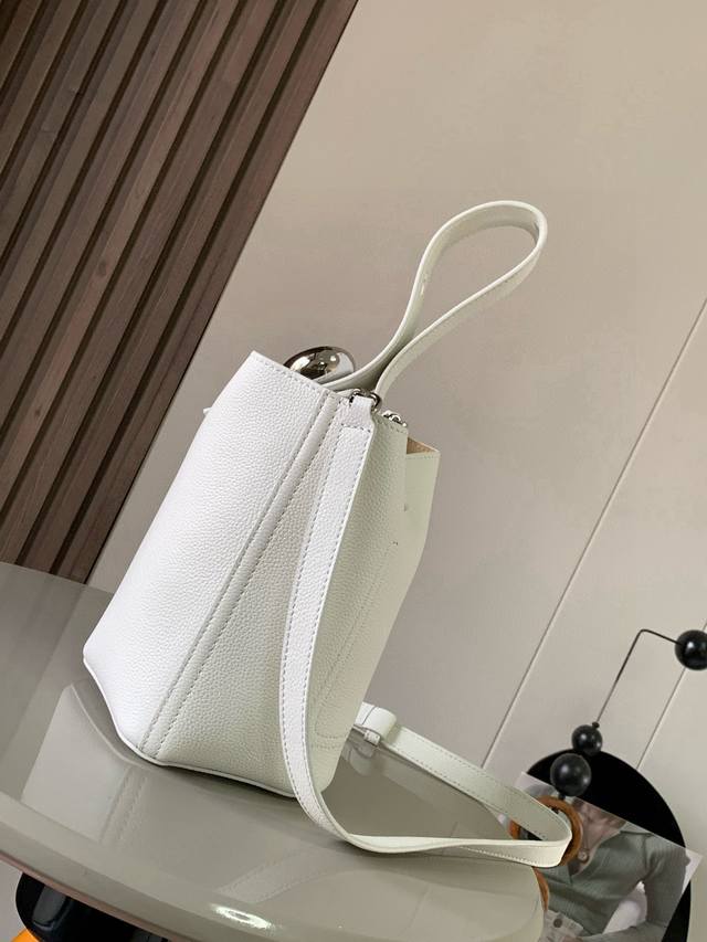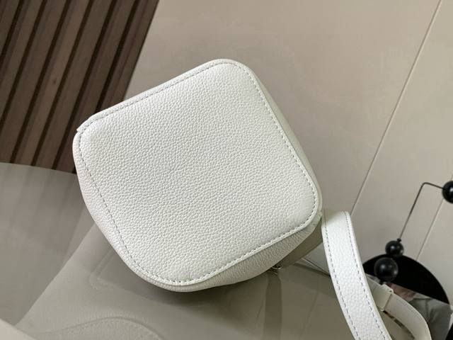 Mini soft grained cowhide leather pebble bucket bag The pebble handbag cleverly combines pure simple lines with eye-catching design style to create a unique and innovative handbag design. The iconic Anagram engraved hardware combines decorative and practical functions, with adjustable shoulder strap length and suitable for various carrying methods. The unique twisted structure complements the subtle details. This mini version is made of soft grained cowhide leather. Can be carried crossbody, on the shoulder or by hand * Adjustable and detachable shoulder strap * Magnetic buckle closure * Inner pocket * Synthetic leather lining *