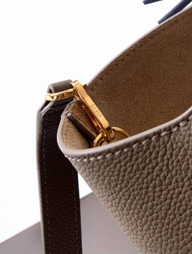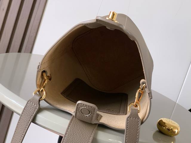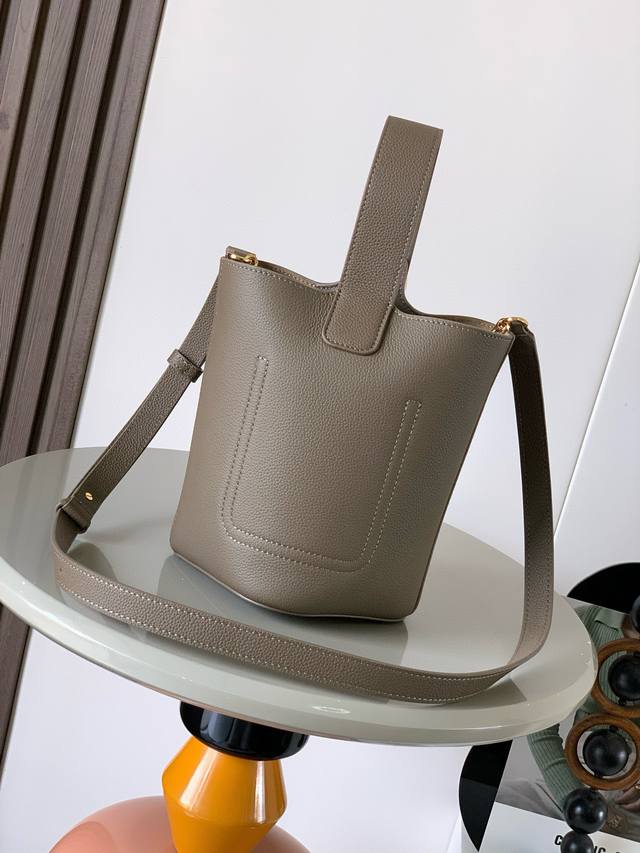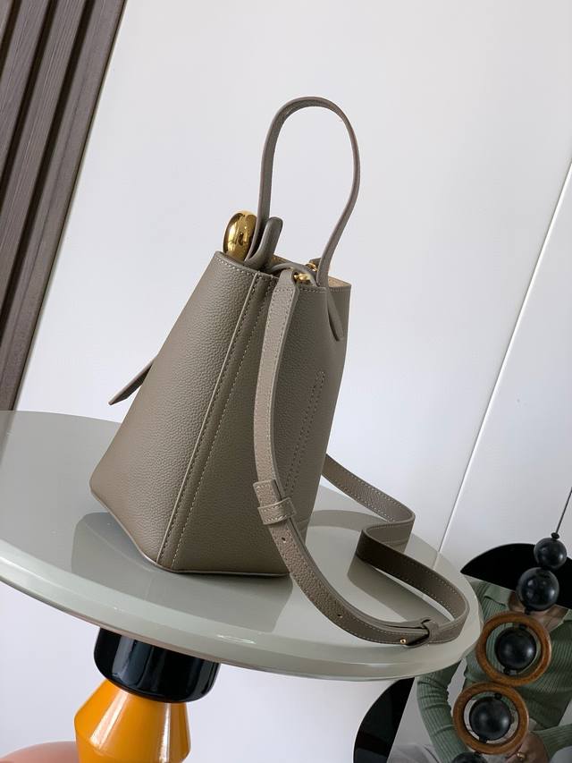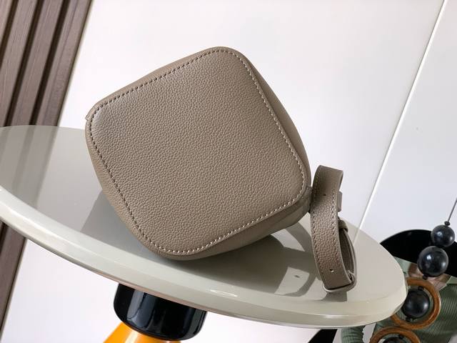 Mini soft grained cowhide leather pebble bucket bag The pebble handbag cleverly combines pure simple lines with eye-catching design style to create a unique and innovative handbag design. The iconic Anagram engraved hardware combines decorative and practical functions, with adjustable shoulder strap length and suitable for a variety of carrying methods. The unique twisted structure complements the subtle details. This mini version is made of soft grained cowhide leather. Can be carried crossbody, on the shoulder or by hand * Adjustable and detachable shoulder strap * Magnetic buckle closure * Inner pocket * Synthetic leather lining * Anagram engraved pebble