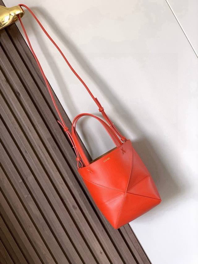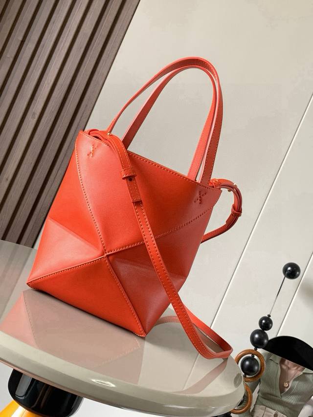 Original Leather Ddd New Glossy Cow Leather Mini Puzzle Fold Handbag Plays with Geometric Shapes Again. It's been a long time since I've seen such a practical and stylish tote bag. This one continues the geometric aesthetics of the Puzzle series, inspired by origami bags, allowing the Puzzle Fold Tote to switch effortlessly between three-dimensional and flat shapes. The leather is exquisitely glossy, and the bag itself is ultra-lightweight and foldable. The Puzzle Fold handbag draws inspiration from the geometric lines of the brand's classic handbag series, using creative ingenuity to reinterpret it as a stylish tote bag. It can be completely folded, making it a perfect travel companion. This mini version is crafted from soft, glossy cow leather Ddd Size: 20cm