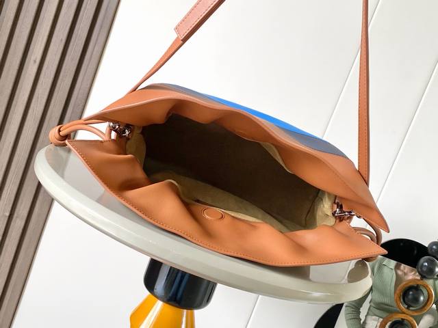 Original Leather DDD New Medium Nappa Leather Flamenco Clutch. The Flamenco clutch features a relaxed style with a drawstring design adorned with a historic knot. This medium version is crafted from Nappa leather. The square intarsia pattern is inspired by Josef Albers' "Homage To The Square" collection. This handbag is part of the Josef And Anni Albers collection. *Can be carried on the shoulder, crossbody, or by hand. *Detachable and adjustable shoulder strap. *Magnetic snap closure. *Suede lining. *Gold or silver foil stamping and Josef Albers signature. DDD Dimensions: 30