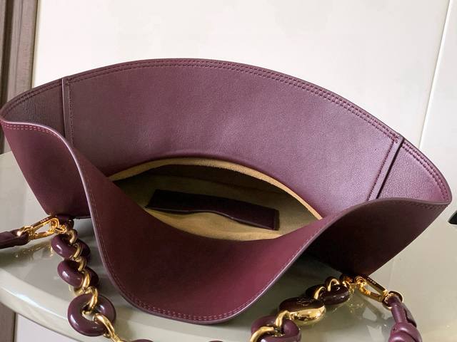 Original Leather Ola Medium Smooth Calfskin Handbag. The Ola is a soft, lightweight, and versatile summer handbag featuring an arched body, a sleek flap, and a striking donut chain. This medium version is made of smooth calfskin leather. *Detachable calfskin tubular shoulder strap. *Detachable donut chain. *Flap closure. *One interior pocket. L0Ewe gold foil stamping, engraved Anagram logo. Dimensions: 26cm