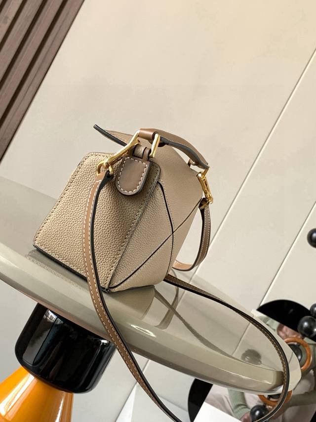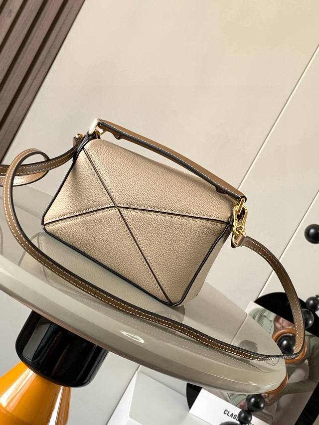 Original Leather Ddd Popular Geometric Bag Mini 18Cm Original Imported Nappa Calfskin Puzzle Handbag. This is the first handbag launched by Creative Director Jonathan Anderson for L0Ewe. The rectangular shape and precise cutting techniques create the unique geometric lines of the Puzzle. This mini version is made of classic cowhide leather. The mini Puzzle can accommodate items such as a small vertical wallet, most sizes of mobile phones up to 6.1 inches, and a sunglasses case. It can be carried crossbody, shoulder, hand, or by the top handle. The detachable shoulder strap makes the bag's weight negligible, super practical. Perfect for carrying your phone, small wallet, lipstick, and compact powder without feeling bulky. Start your carefree and enjoyable life from now on! Sizes: 18