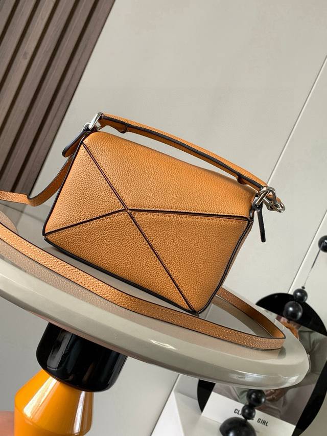 Original Leather Ddd Popular Geometric Bag Mini 18Cm Original Imported Nappa Calfskin Puzzle Handbag. This is the first handbag launched by Creative Director Jonathan Anderson for L0Ewe. The rectangular shape and precise cutting techniques create the unique geometric lines of the Puzzle. This mini version is made of classic cowhide leather. The mini Puzzle can accommodate items such as a small vertical wallet, most sizes of mobile phones up to 6.1 inches, and a sunglasses case. It can be carried crossbody, shoulder, hand, or by the top handle. The detachable shoulder strap makes the bag's weight negligible, super practical. Perfect for carrying your phone, small wallet, lipstick , and powder compact without feeling bulky. Start your carefree and enjoyable life from now on! Sizes: 18