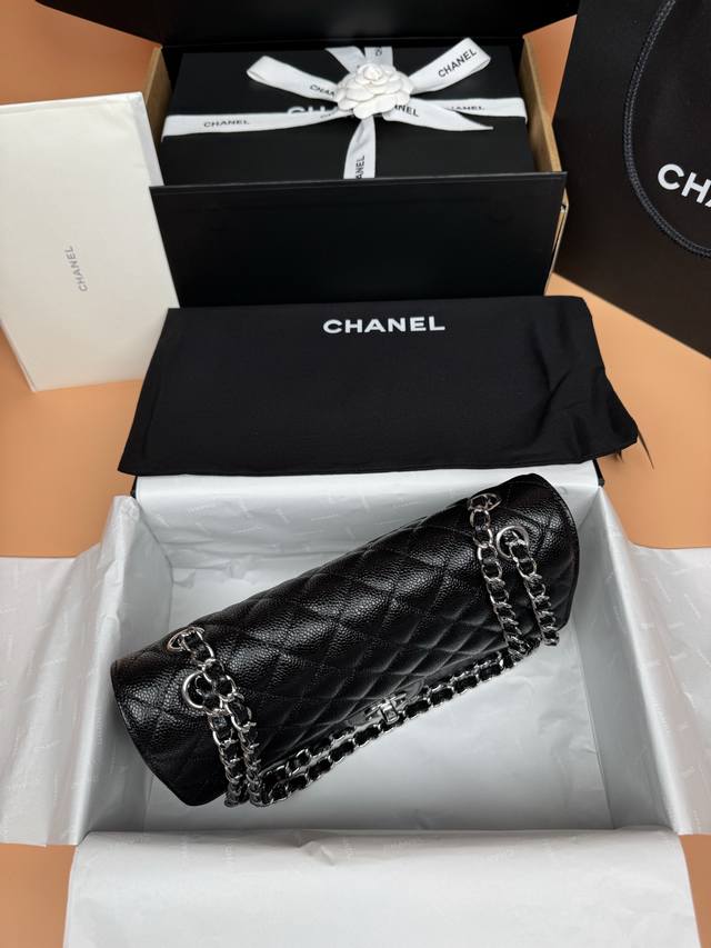 Original Leather DDD Series: 25.5Cm Top-Tier Upgraded Version DDD A Blend of Fashion and Classic, Timeless DDD Leather: Original Imported Black Gum-Patterned Calfskin DDD Hardware: All-Steel Silver DDD Size: W25.5