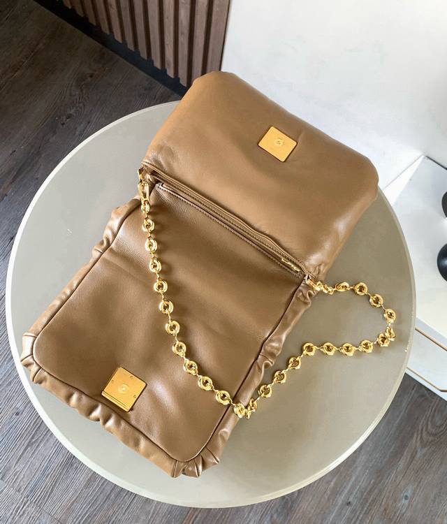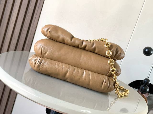 Puffer Goya is inspired by Goya's aesthetic and key details. It brings a new sensory and tactile dimension through shiny nappa sheepskin with goose feather lining. It comes with a detachable metal donut chain. *Shoulder carry, magnetic clasp "Two compartments include a zipper, a very special bag pocket and a patch pocket, nappa sheepskin lining A very special bag Puffer Goya is so fat, so chubby Goya is so cute. It feels invincible, really beautiful. The cloud bag is chubby and soft. Fufu is super cute. It is as soft as a pillow and feels super good. It comes with a short donut-shaped metal chain. It is not tiring to carry on the shoulder and the comfort index is perfect