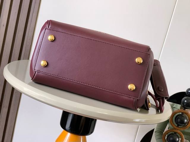 Original Leather Ddd Small Soft Calfskin Madrid Handbag. The Madrid features a soft, structured trapezoidal shape with a gusseted design, adjustable handles, and a pebble magnetic closure. This small version is made of soft calfskin leather. *Can be carried on the shoulder, crossbody, or by hand. *Adjustable shoulder strap with leather extension strap. *Anagram pebble magnetic closure and zipper closure. *One zippered interior pocket. *Anagram pebble metal feet. *Nappa lambskin leather lining. Ddd Dimensions: 23.5cm