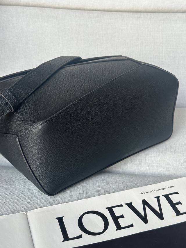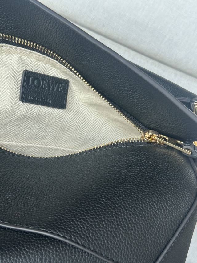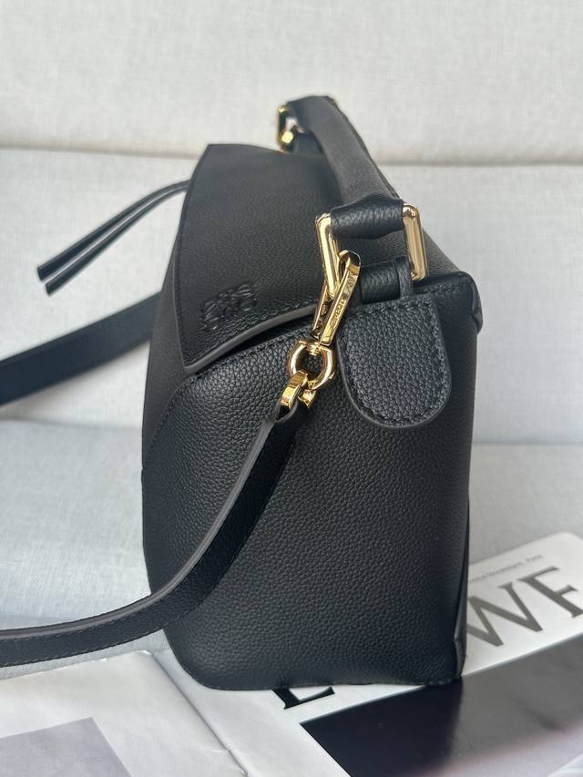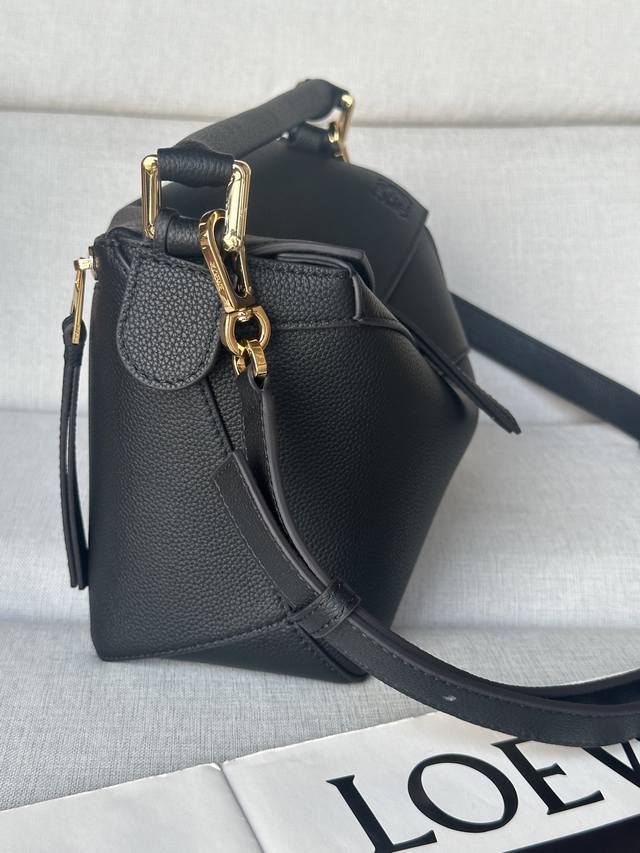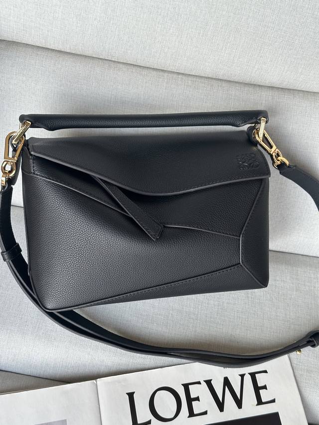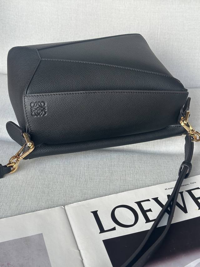 Original Leather DDD Small Soft Grained Calfskin Puzzle Handbag DDD Black/Gold 3001M DDD The Puzzle Edge features a distinctive geometric silhouette with overlapping panels adorned with a single row of stitching, setting it apart from classic designs. This small version is crafted from soft grained calfskin. Dimensions: 24-16-10 DDD