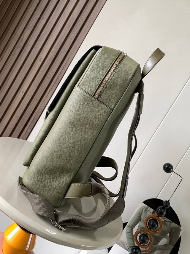 Soft grained cowhide military backpack The Military Backpack is a spacious and versatile backpack with a main compartment and an additional compartment under the folding flap, closed with a magnetic clasp and an additional pin buckle, and the shoulder straps are adjustable with a metal slider. This version is made of soft grained cowhide leather, making it a high-looking backpack for men! The square shape is perfect for boys~ The grained calfskin is super soft to the touch. Not only that, it also has an extra-large capacity, suitable for commuting and business travel, combining fashion and practicality!