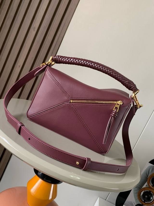 The new small soft calfskin puzzle bag is the first handbag from Creative Director Jonathan Anderson. The rectangular shape and precise cutting techniques create the puzzle's distinctive geometric lines. This small version is crafted from soft calfskin and features a unique woven handle. *This small puzzle bag can accommodate a large wallet, all-sized phones, and sunglasses. It can be carried on the shoulder, crossbody, in the hand, or in the hand. Removable and adjustable shoulder strap. *Zip closure, calfskin zipper pull, exterior zippered back pocket, and interior slip pocket. *Customizable with shoulder strap and personalized charm. *Suede lining. *Anagram embossing