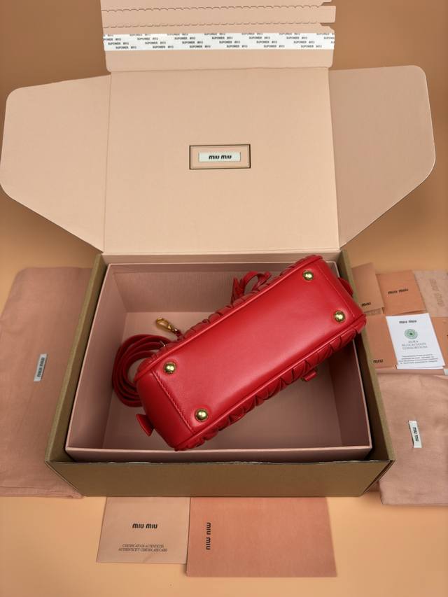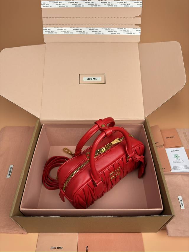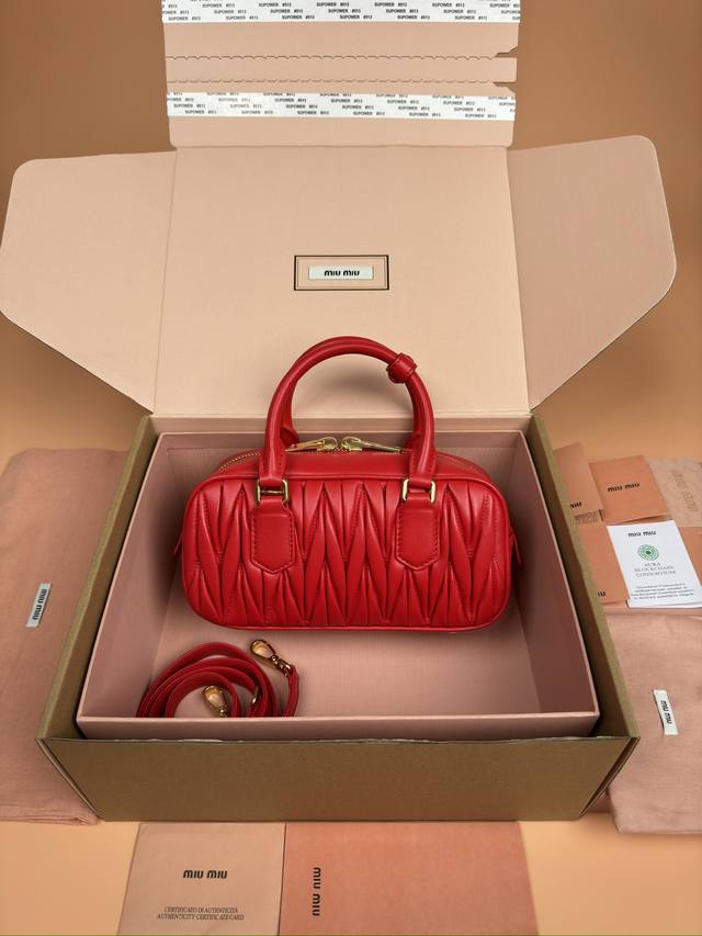 Premium hardware original leather Arcadie Matelasse sheepskin small 22cm bowling handbag crossbody bag ~ bright red sheepskin