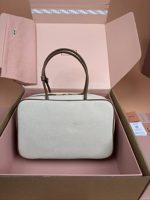 Original leather, with picture packaging DDD Premium hardware, original leather Beau canvas tote/shoulder bag ~ new white briefcase DDD This Beau handbag features a striking interplay of materials and colors, showcasing its unique design. Exquisite details such as gold-plated hardware stand out, while the embossed logo exudes classic style. DDD Dimensions: W34