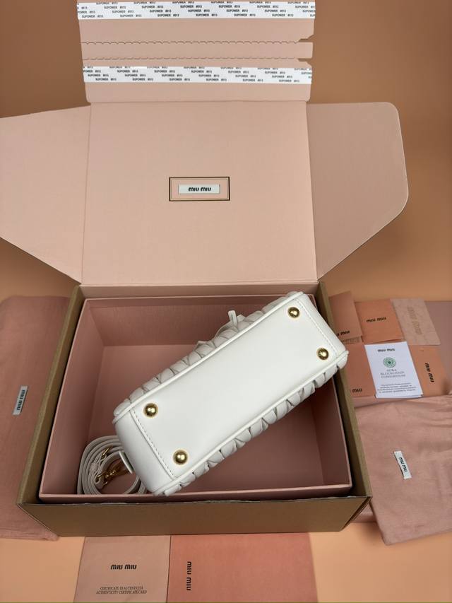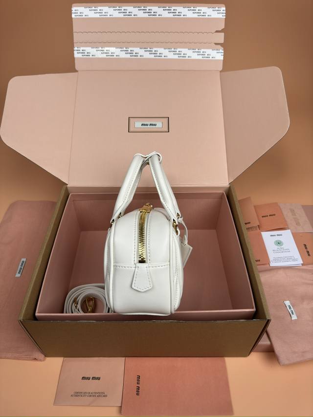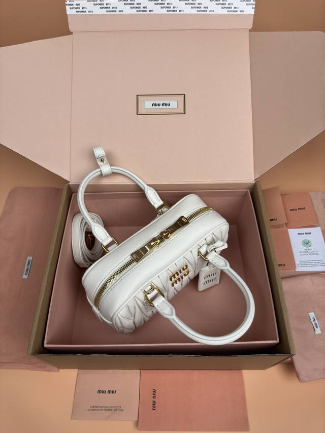 Premium hardware original leather Arcadie Matelasse sheepskin small 22cm bowling handbag crossbody bag ~ white sheepskin