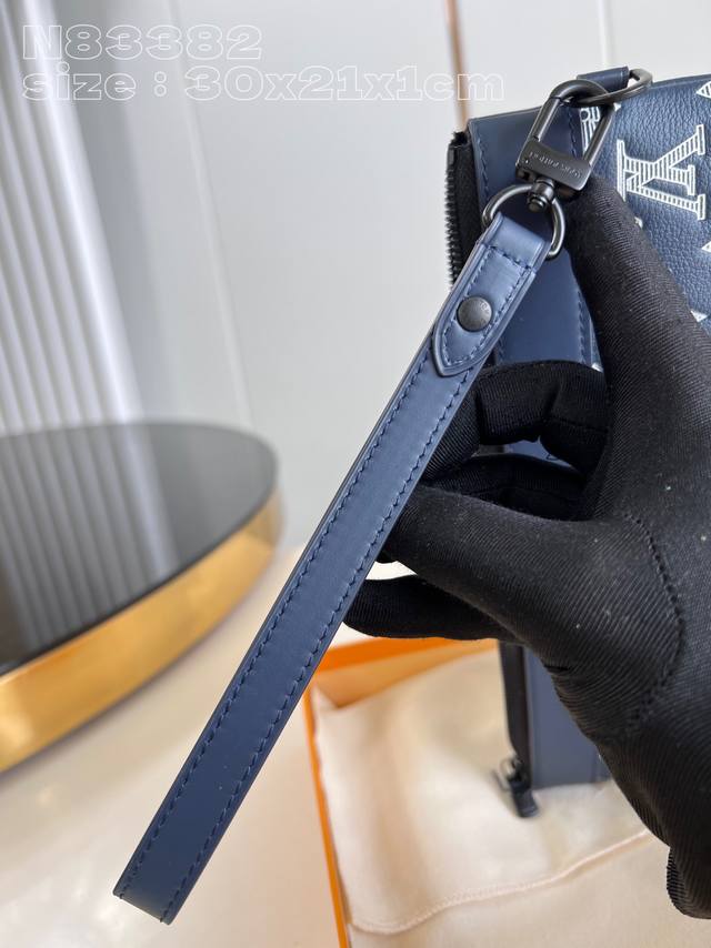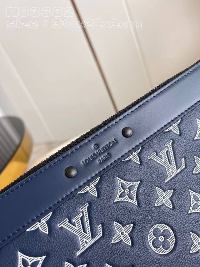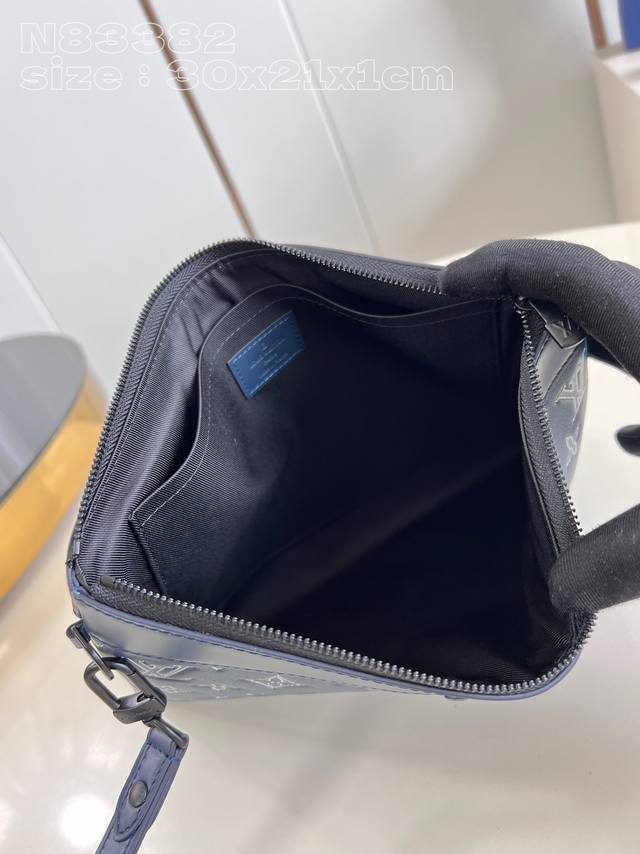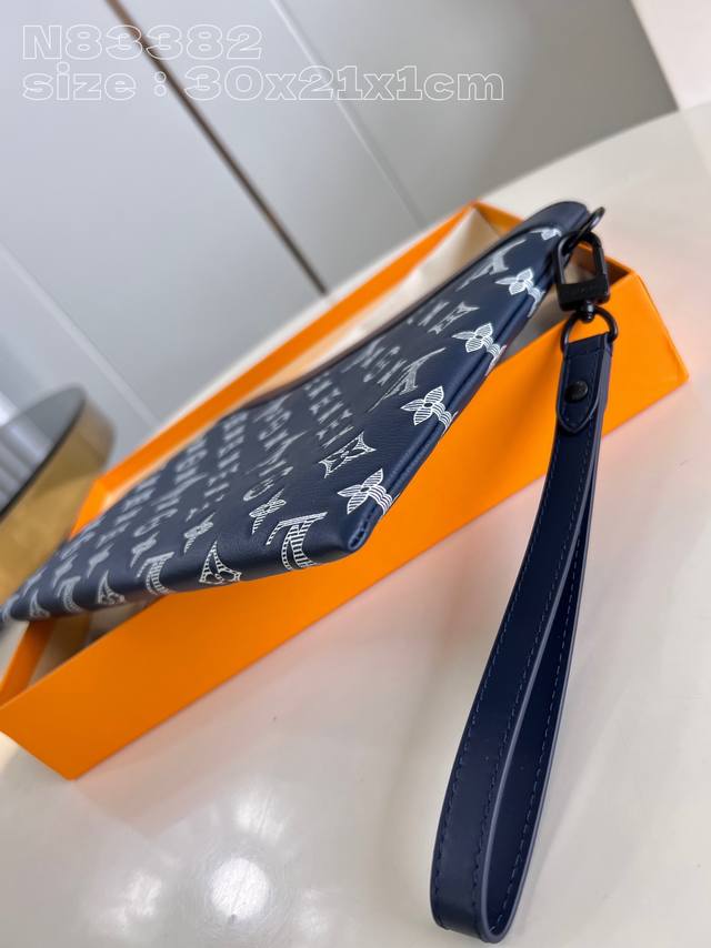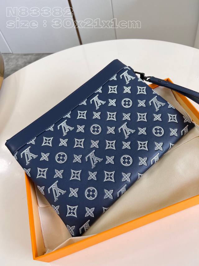 Original N83382 Pochette To-Go clutch. Made from exquisite Monogram Shadow embossed cowhide leather, the zippered closure offers ample storage for receipts, a phone, and other personal items. It can also be worn with a detachable wristlet. 30 x 21.5 x 1 cm (Length x Height x Width) C