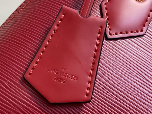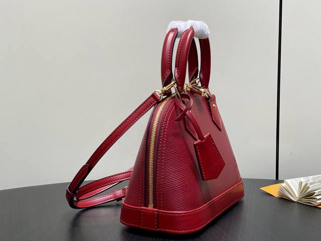 Original Quality M25562 Burgundy Water Ripple Shell Bag Alma Bb. Inspired by the original design from 1934, this timeless Alma Bb version belongs to the Back to School collection. Crafted from grained Epi leather, it features smooth details on the handles and trim, including a signature keybell. Gold hardware adds a chic finish, and a signature padlock adorns the top. It can be worn in multiple ways and includes an interior pocket for the security of valuables. 23.5 x 17.5 x 11.5 cm (Length x Height x Width)