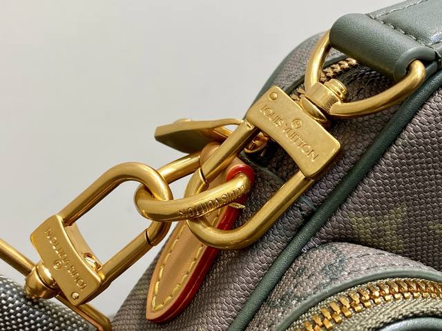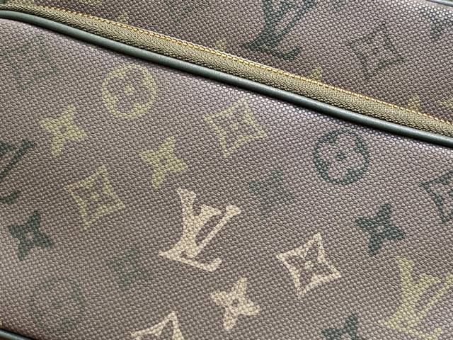 Original Quality M27095 Military Green Men's Business Bag (Nil Handbag) This Nil handbag features a vintage design crafted from Monogram Surplus coated canvas, with a subdued color palette highlighting the irregular Monogram pattern. Distressed metal hardware and sun-kissed leather elevate its elegant style. A detachable top handle and adjustable wide shoulder strap offer versatile styling options. 17.5 x 11 x 25 cm (H x W x Length)