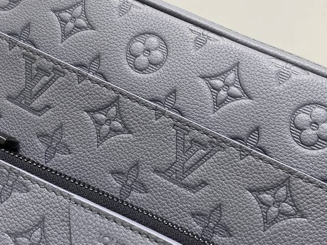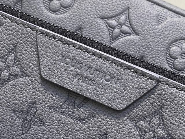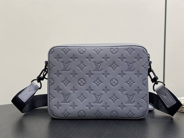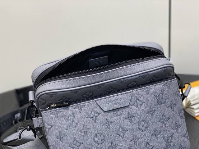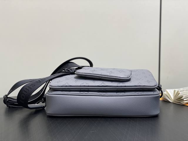 Original Quality M27185 Grey Full Leather Men's Three-Piece Trio Messenger Bag M27925, Dark Blue 26713, Black 27185. Made of soft Monogram Shadow calfskin with grey striped embossed leather, featuring a Monogram Shadow leather strap and main compartment. The zippered front pocket, shoulder strap, and attached coin purse are all detachable. The shoulder strap is also adjustable for a comfortable and snug fit. Dimensions: 18.5 x 7 x 25 cm.