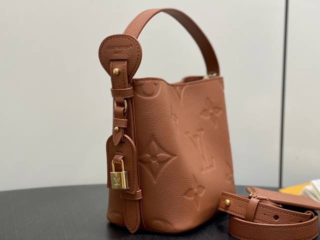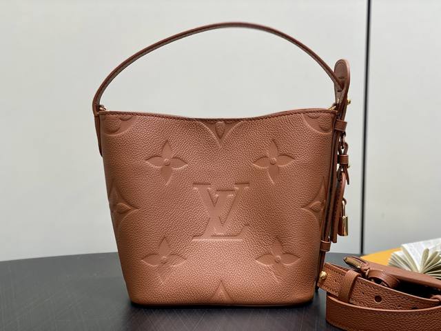 Original Quality M28820 Brown Full Leather Embossed Bucket Bag All In Bob Handbag M13480 Black M14356 Pink M13045 Grey This All In Bob handbag blends modern design concepts with an elegant silhouette and ample space. Monogram Empreinte leather craftsmanship creates a simple bucket bag structure, while the iconic nameplate and metal padlock highlight sophisticated details. The adjustable handle pays homage to the brand's trunk-making heritage. 18 x 12 x 16 cm (H x W x Length) DDD