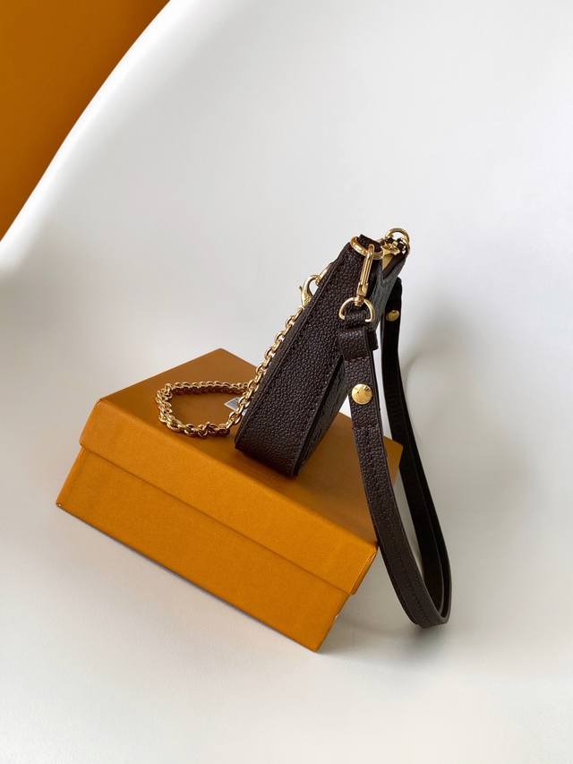 Overseas Original Single Item Updates 163 M13614 Chocolate M14421 Khaki M83448 Gradient M81862 Grey M82346 Pink M81862 Burgundy M81066 Off-white M80349 Black Exclusive Real Shots! The Spring Collection Easy Pouch On Strap handbag is crafted from Monogram Empreinte leather, exuding sophisticated style with its Monogram embossing and soft texture. The clever use of the chain and adjustable leather shoulder strap allows for easy switching between shoulder or crossbody wear. Dimensions: 19