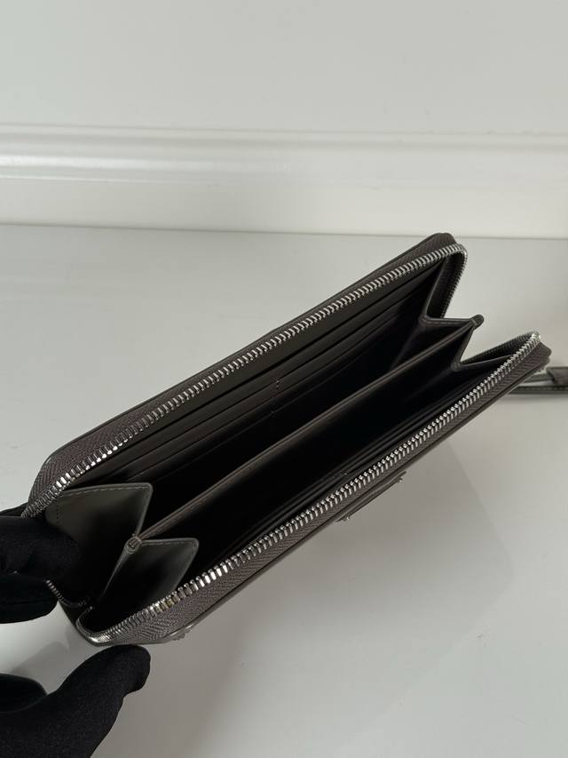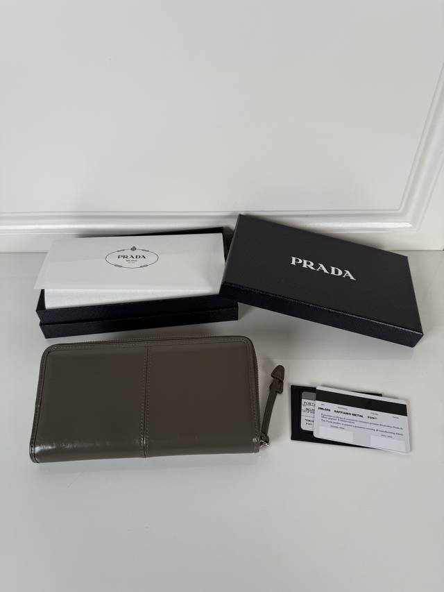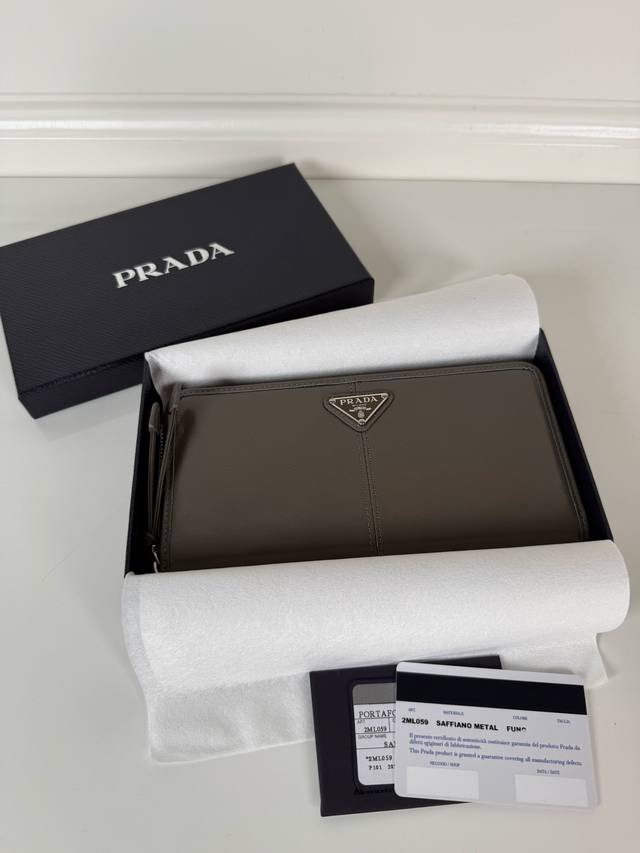 p brand men's and women's zipper bag, black oil-waxed leather, triangular silver hardware label, original quality, model 2Ml059, made of imported oil-waxed cowhide, size 20cm