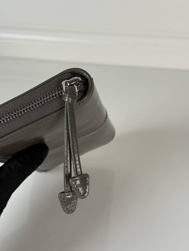 p brand men's and women's zipper bag, black oil-waxed leather, triangular silver