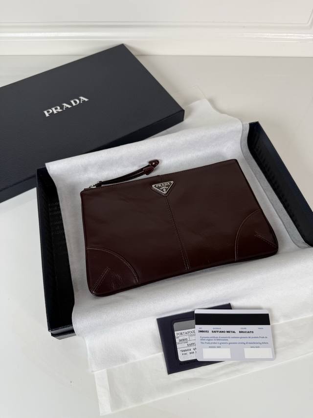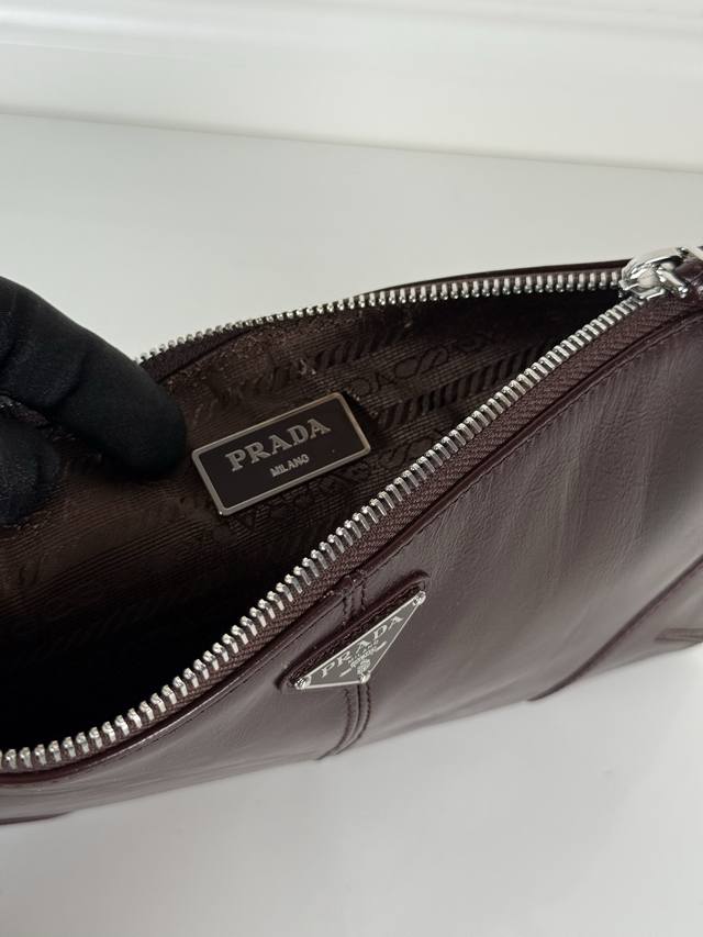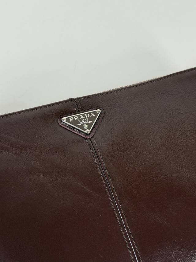 p Home Oil-waxed Leather Handbag 2Mb052 Small Oil-waxed Leather Handbag, original quality, made of imported oil-waxed leather, with a zipper closure, polished stainless steel hardware, internal logo, and external triangular logo. Combining practicality and a unique design style, it appears exceptionally fashionable and sophisticated. Length 24cm x Height 14.5cm.