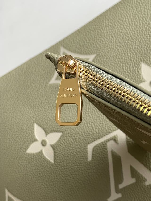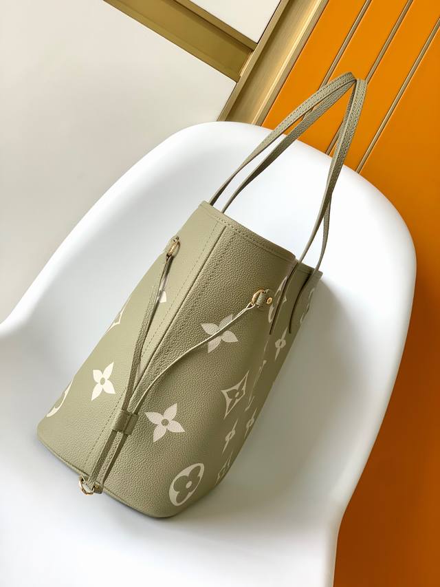 p M46649 Green Neverfull Medium Handbag, crafted from Monogram Empreinte leather, adds a touch of spring to this season's attire. Tightening the side drawstrings allows for both spaciousness and a relaxed, effortless style. A long leather shoulder strap ensures comfortable carrying. 31.0 x 28.0 x 14.0 cm (Length x Height x Width)