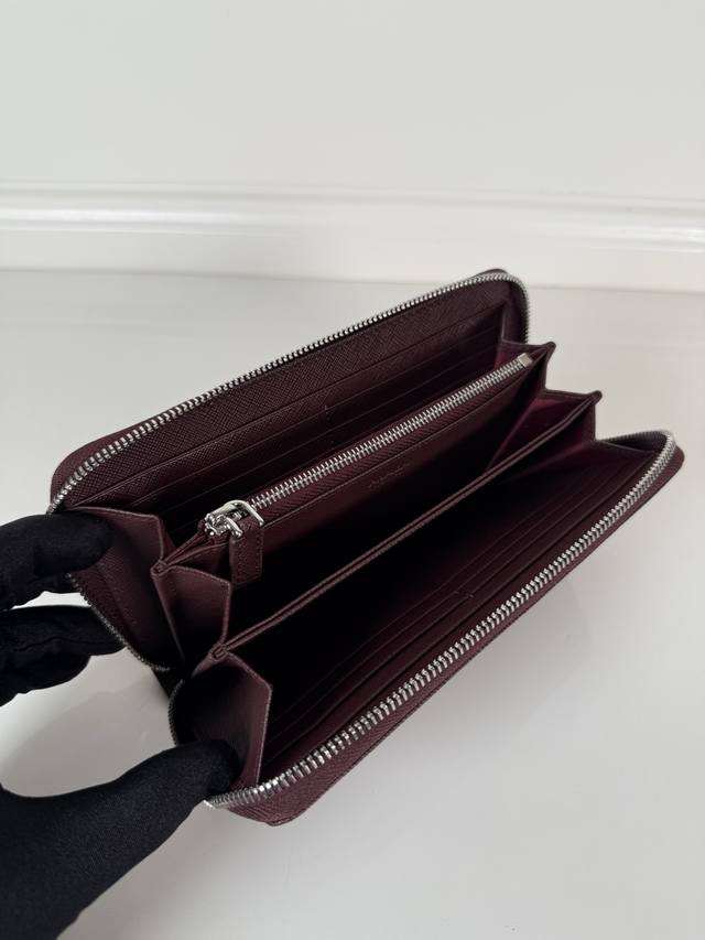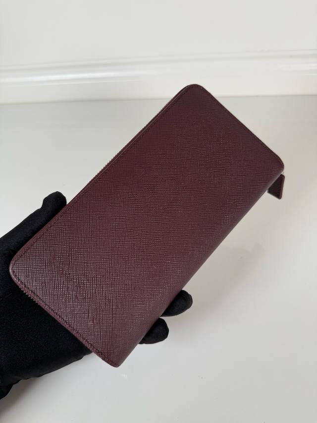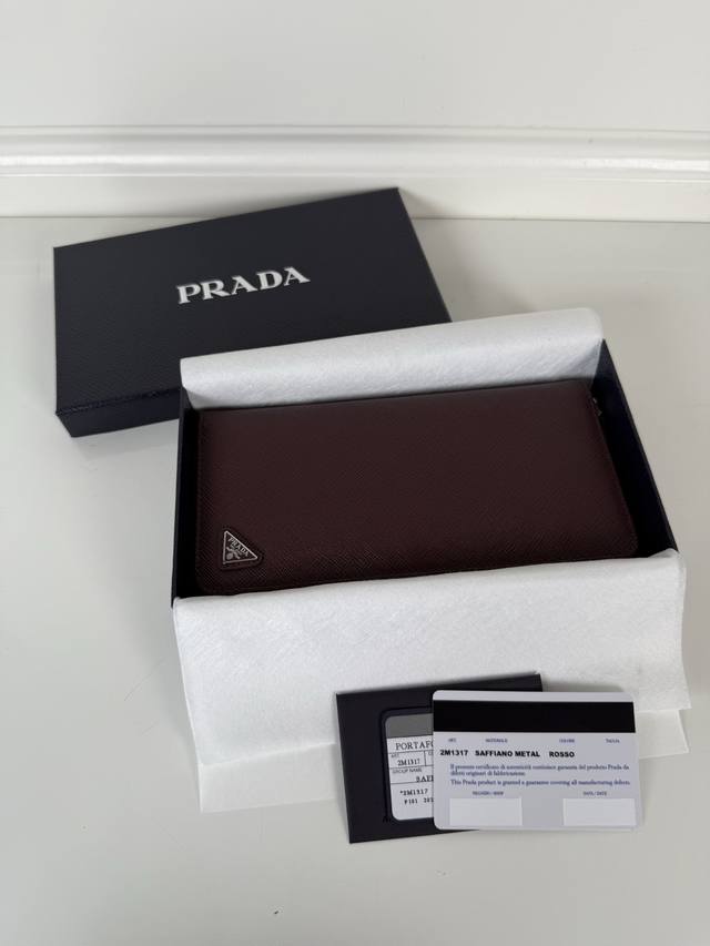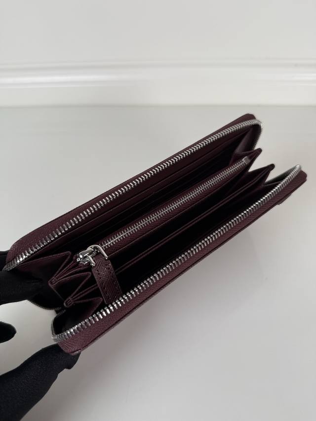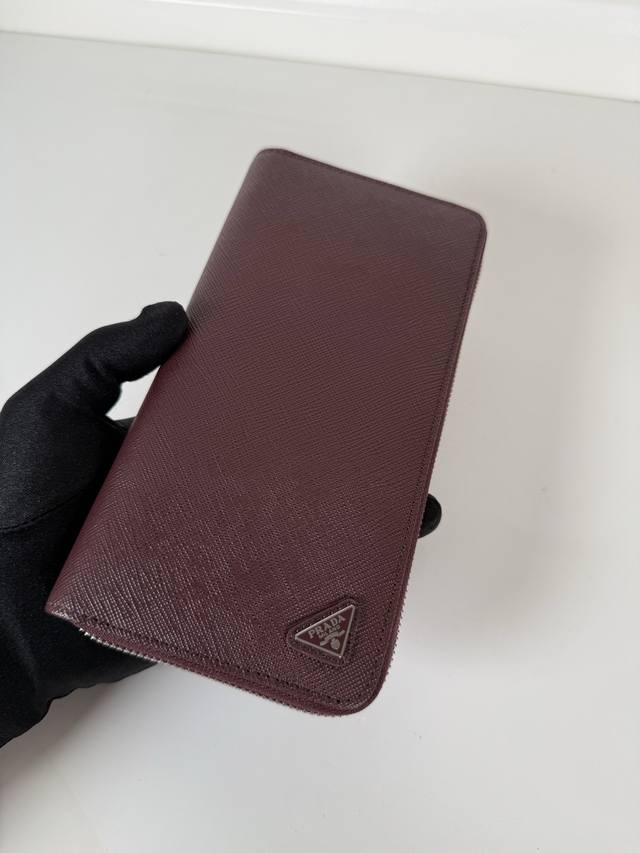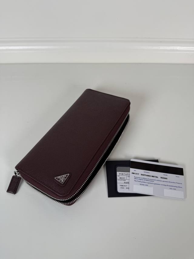 / p Men's Cross-Grain Leather Wallet, Bordeaux Red, Model 2M1317, Original Quality