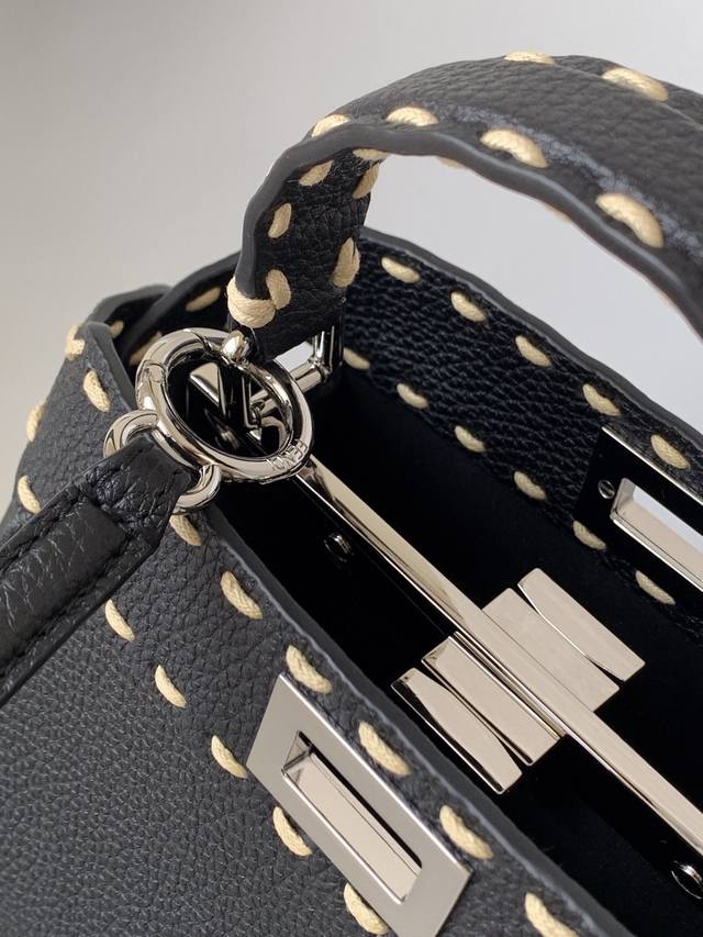 peekaboo small handbag, lychee texture material, hand-stitched, decorated with classic twist locks on both sides, two compartments separated by a hard partition, detachable shoulder strap, can be carried by hand, shoulder or crossbody Size: 23-11-18Cm 244