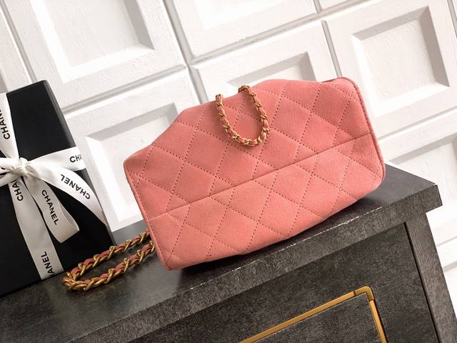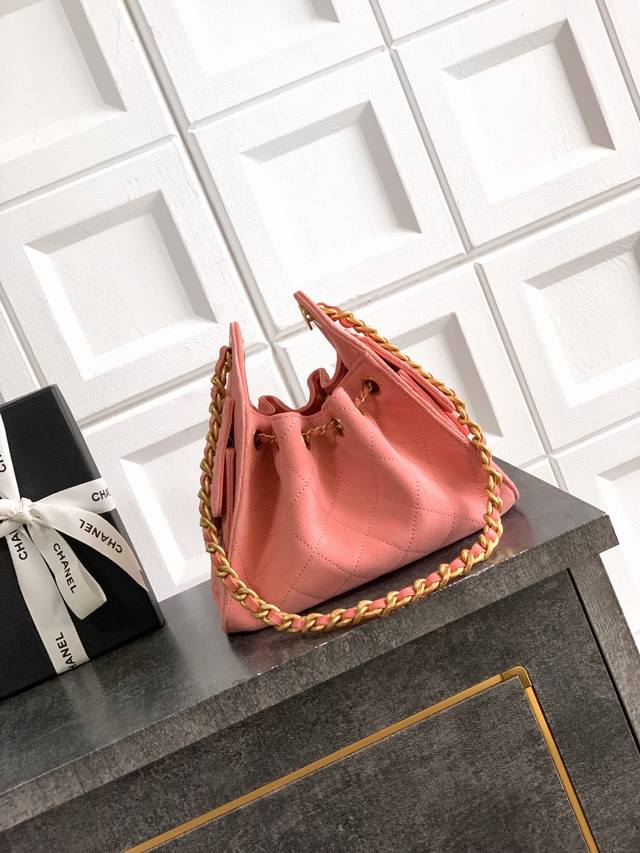 Pink 26C Newest Color Mini Size: Size: 20 x 22 x 12.5 cm, Ohanel 26C Bucket Drawstring Bag! A new cutie added to the Chanel collection. Its main body is actually a small bucket bag, made of soft, caviar-textured leather. Perfect for carrying cute mini earphones, it seems like a carefully crafted accessory. The large double-C logo design is adjustable! Charming details include a non-adjustable chain, gold accents, and vintage-finished hardware, giving it a truly vintage feel. A truly stunning piece. Size: 22 cm 5631 DDD