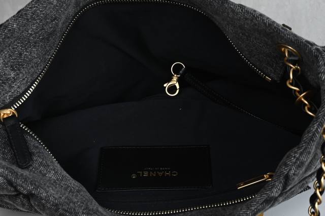 Platinum Edition Authentic Packaging as shown in the picture. Brand new arrival. Double-pocket shopping bag in black denim. Purchased from a department store and developed from scratch. Hardware: Thickly plated with vintage gold. Fabric: Denim. Size: ** 5740
