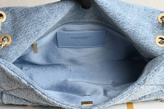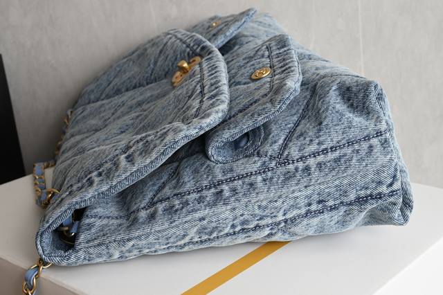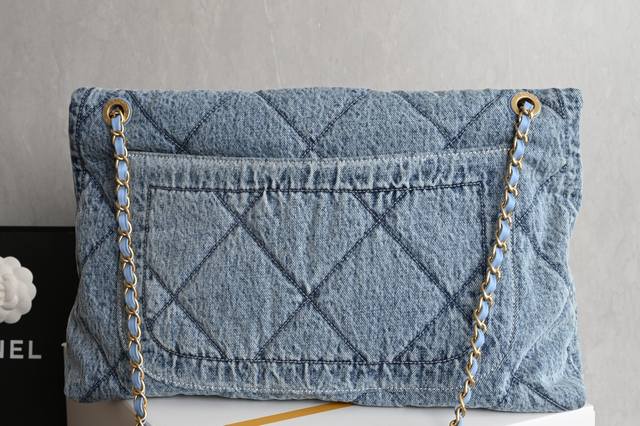 Platinum Edition Authentic Packaging as shown in the picture. Brand new arrival. Double pocket blue denim. Original retail price: 76440. Hardware: Thick vintage gold plating. Fabric: Denim. Size: ** 5727