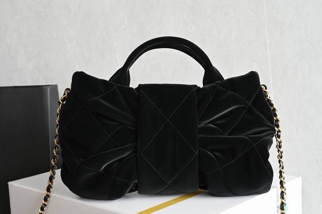 Platinum Edition Authentic Packaging as shown in the picture. Brand New Arrival. Velvet Bow Bag, Black, Small Size. Purchased from a boutique and developed from scratch. Hardware: Thickly plated with vintage gold. Fabric: Velvet effect nylon. Size: ** 5849