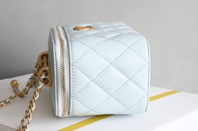 Platinum Edition Authentic Packaging as shown in the picture. New arrival, light blue. Brand new version, small gold ball double bead chain cosmetic bag. The small gold bead chain is fashionable and versatile, a must-have! The adjustable chain allows for various styles, easily handling different carrying methods