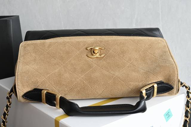Suede messenger bag in khaki and black