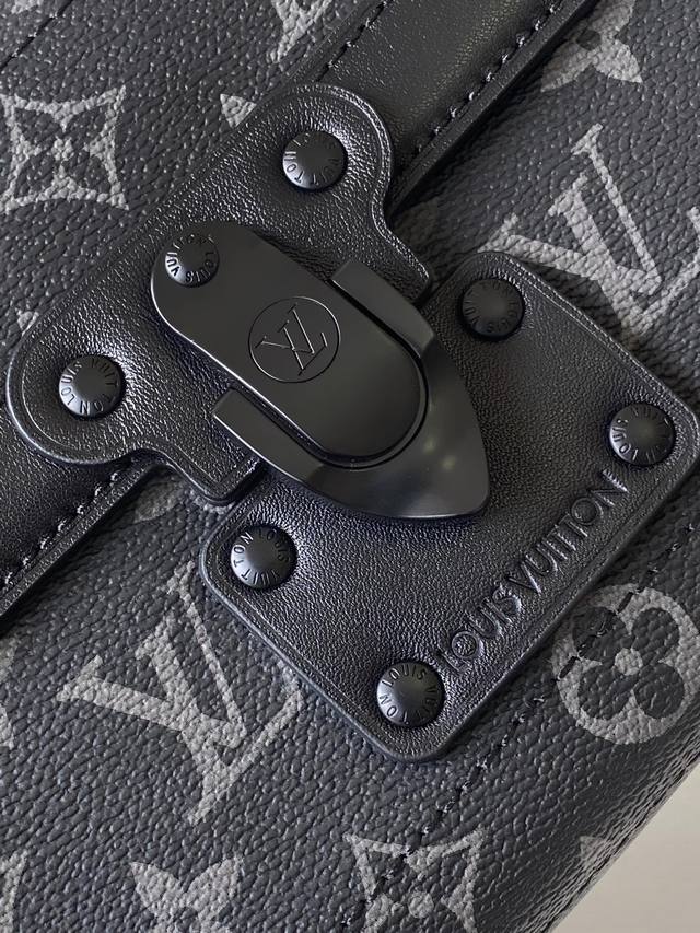 pM11743 Black Floral Pattern Chip Version, Top-Tier All-Steel Hardware, Exclusive Original, Real Shot. This Soul Trunk handbag is crafted from Monogram Eclipse canvas, achieving a comfortable crossbody look with its soft, close-fitting, and compact construction. Reinforced corners, leather details, and a Tumbler clasp highlight its collection identity. Monogram Eclipse coated canvas