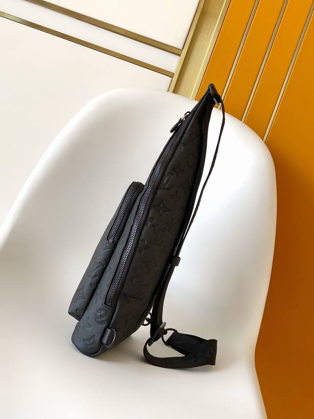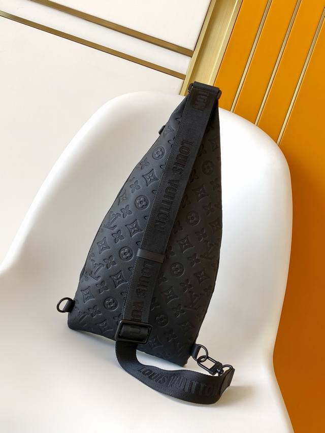 pM26730 Black top-grain calfskin. This 21890 model with Monogram Shad brings comfort and style to the Duo Slingbag. The more fashionable upper adjustable shoulder strap, wider and more functional, adds a sporty touch to this upgraded version. The adjustable shoulder strap can be worn on both sides, achieving a flexible and ergonomic carrying method. Dimensions: 20X42X6Cm.