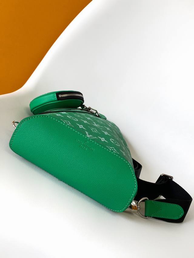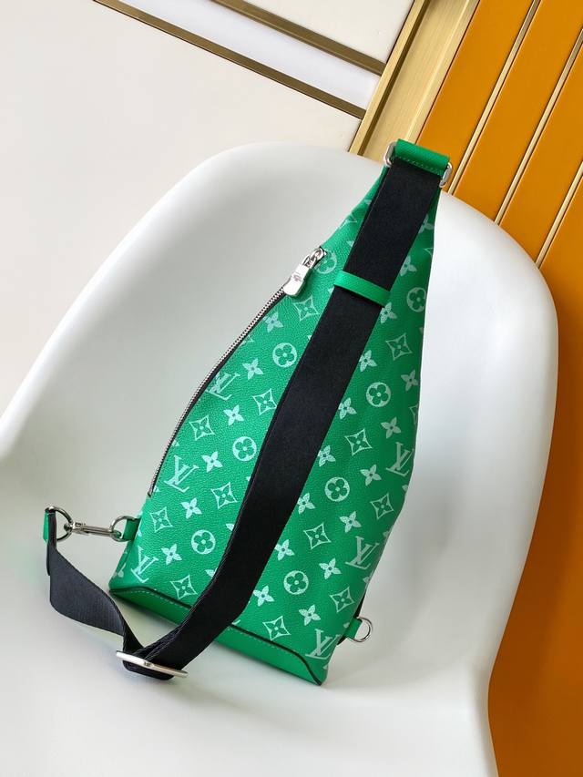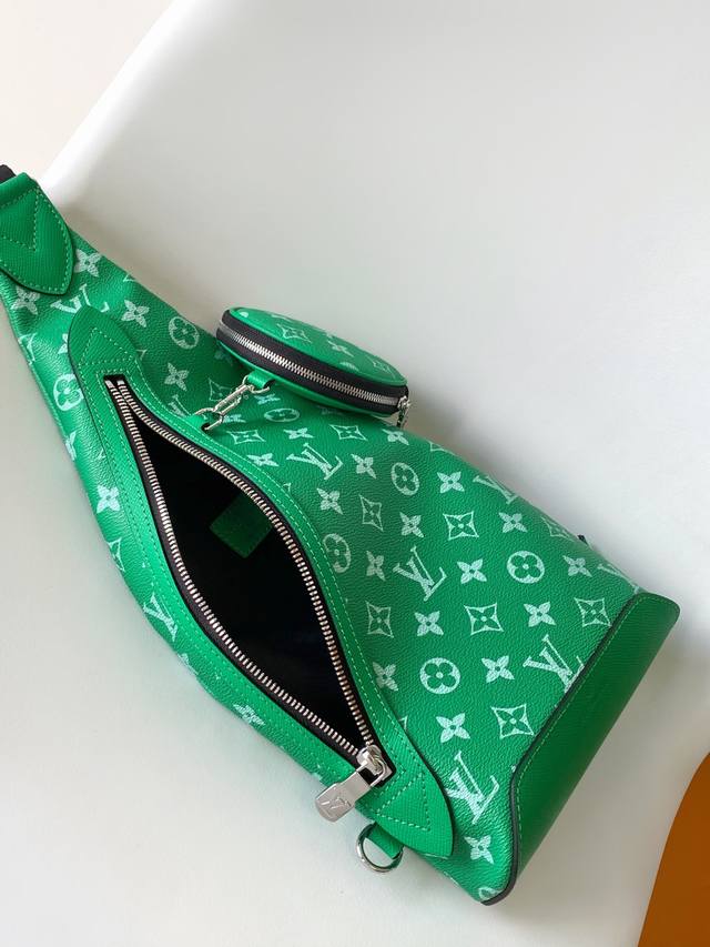 pM31075 Blue M31000 Green Dynamic 163 Original Single M30936 Men's Chest Bag Series Duo Shoulder Bag. This Duo shoulder bag combines Monogram canvas and Taga cowhide leather, featuring a detachable zippered pocket for coins or other essentials, and a zippered side pocket. It interprets a diverse trend concept with a relaxed style, providing a convenient alternative to the traditional backpack. Detailed features: 20 x 42 x 6 cm. DDD