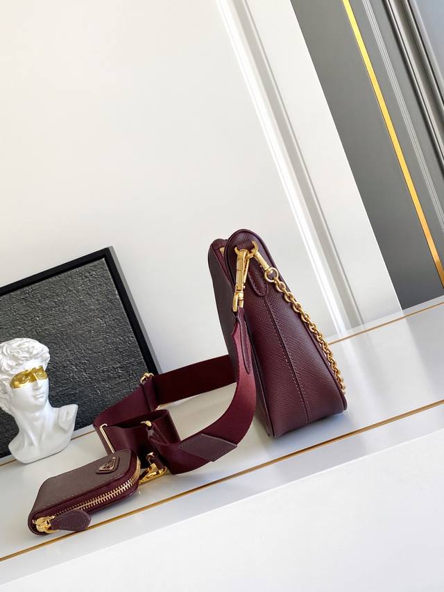 Popular upgraded version Baokuanqnylon Hobo hand-held underarm bag Original cross-grain detachable p home Re-Edition 2005 Saffiano leather name plate with keychain Detachable and adjustable logo fabric shoulder strap Detachable zippered leather pouch Detachable metal chain shoulder strap Top zipper closure Nylon lining Enameled triangular metal logo